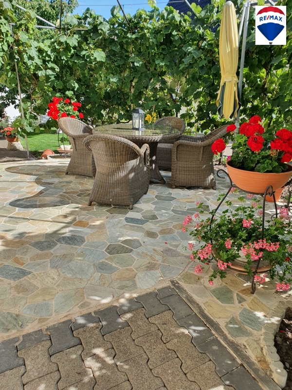 Der Außenbereich des Hauses beeindruckt nicht nur durch seinen gepflegten, natürlichen und reizvollen Garten, sondern bietet auch ausreichend Platz für die gemütlichen und erholsamen Gartenfeste und zum Spielen für die Kinder. Eine charmante blickgeschützte Terrasse sorgt für viele sonnenreiche und erholsame Stunden. Die besondere Note verleiht dem Garten ein kleiner Gemüsegarten mit Gewächshaus. Außerdem gibt es hier einen überdachten Holzlagerplatz mit einem großen Vorrat an Holz.