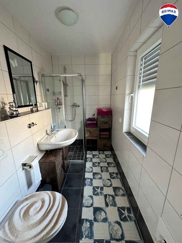Des Weiteren verfügt das Haus über eine Einliegerwohnung mit zwei Zimmern und einem Badezimmer mit Dusche.