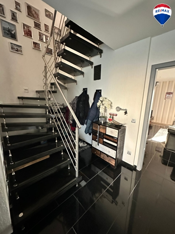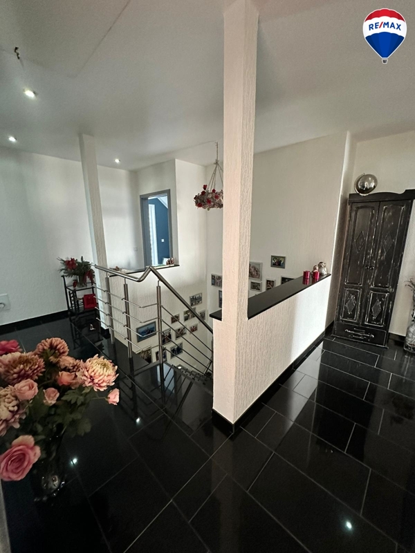 Sie erreichen das Obergeschoss über eine edle Granittreppe mit Edelstahlgeländer.