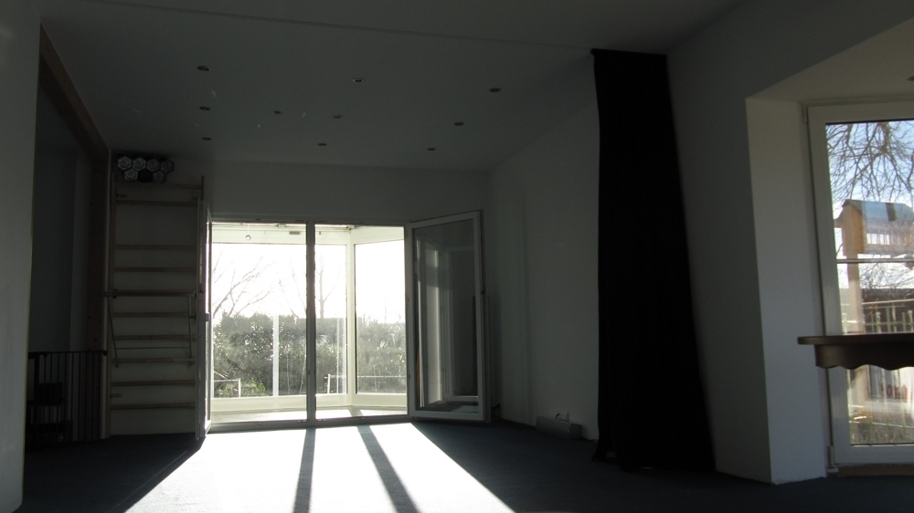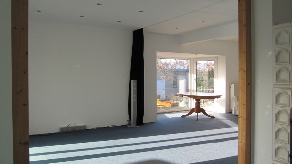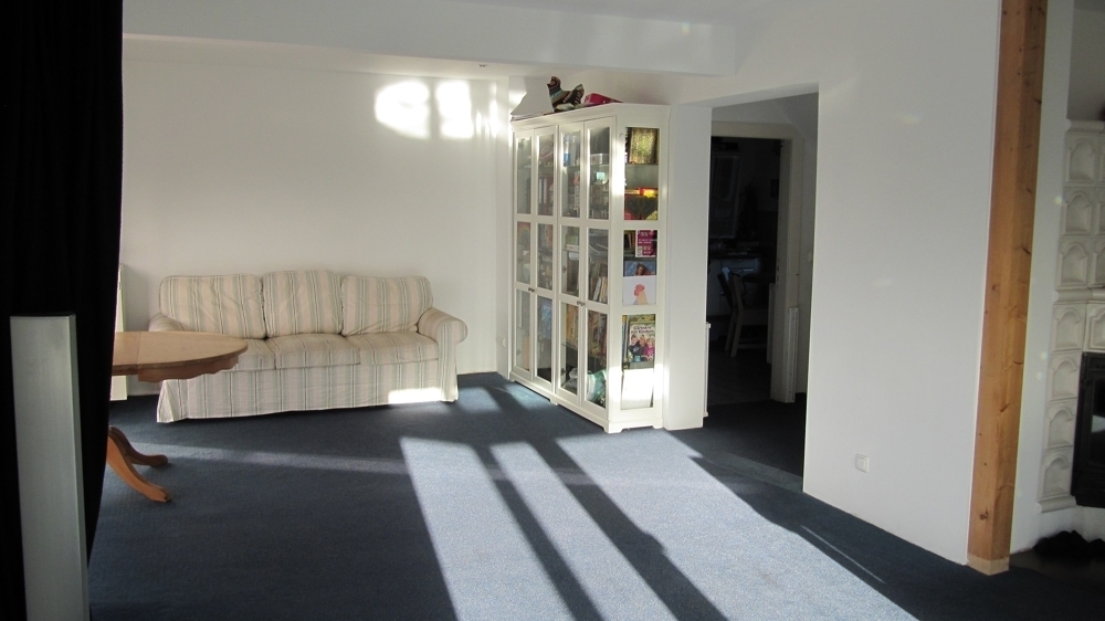 Der Eingang vom Haus ist offen und freundlich gestaltet. Die Wohnung im Erdgeschoss bietet ein Schlafzimmer, wo ein großes Bett und Kleiderschrank ihren Platz finden. Es gibt 3 weitere Zimmer, die als Kinderzimmer oder auch als Büro oder Gästezimmer eingerichtet werden können.