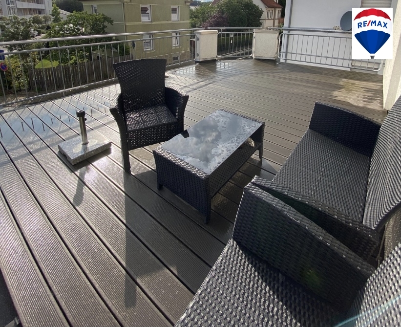 Besonders hervorzuheben ist die wunderschöne Dachterrasse aus Holz im ersten Obergeschoss, welche einen grandiosen Ausblick bietet und zum Verweilen einlädt.