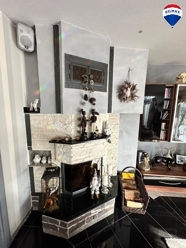 Besonders hervorzuheben ist der mit Riemchen verkleidete Kamin, welcher an kalten Wintertagen für eine wohlige Wärme sorgt.
