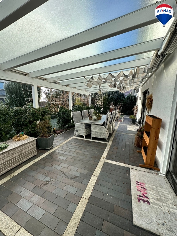 Über den Wohn- und Essbereich gelangen Sie auf die überdachte Terrasse, welche ausreichend Platz für diverse Loungemöbel bietet und in den grünen Garten führt. Hier können Sie gemütlich den Abend mit Ihren Liebsten ausklingen lassen und tolle Grillabende mit der netten Nachbarschaft veranstalten.