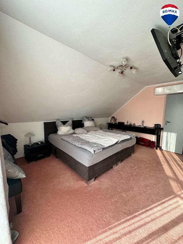 Der Spitzboden des Einfamilienhauses ist ausgebaut und bietet zusätzlichen Stauraum zur individuellen Nutzung.