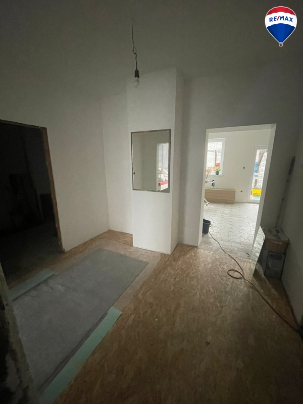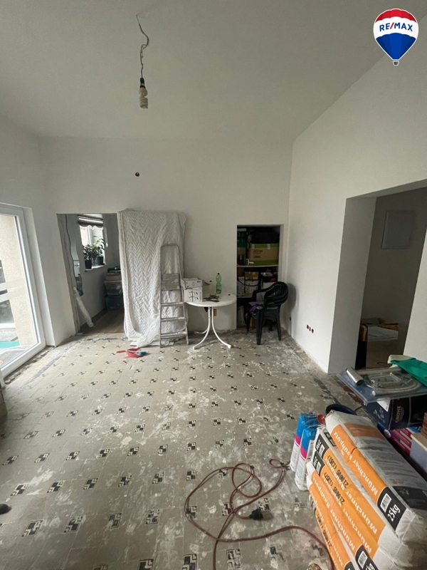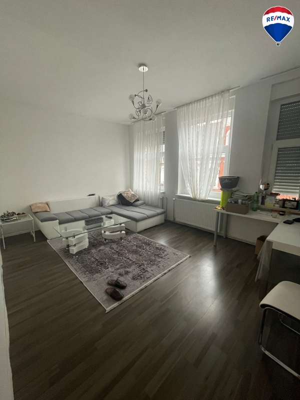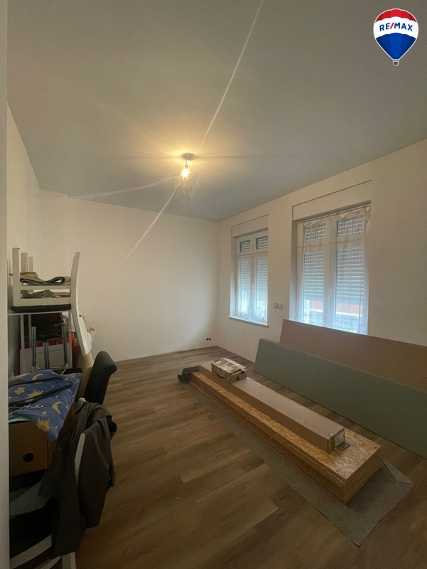 Die Erdgeschosswohnung umfasst eine Wohnfläche von 109,96 m² und steht momentan in der Sanierung (siehe Bilder), es verfügt über einen Garten und einem Anbau mit zwei weiteren Zimmern.