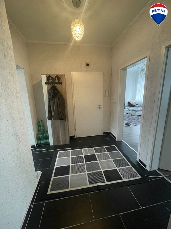 Die Wohnung im ersten Obergeschoss umfasst eine Wohnfläche von 90,08 m², und enthält ein Frisch saniertes Badezimmer