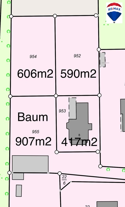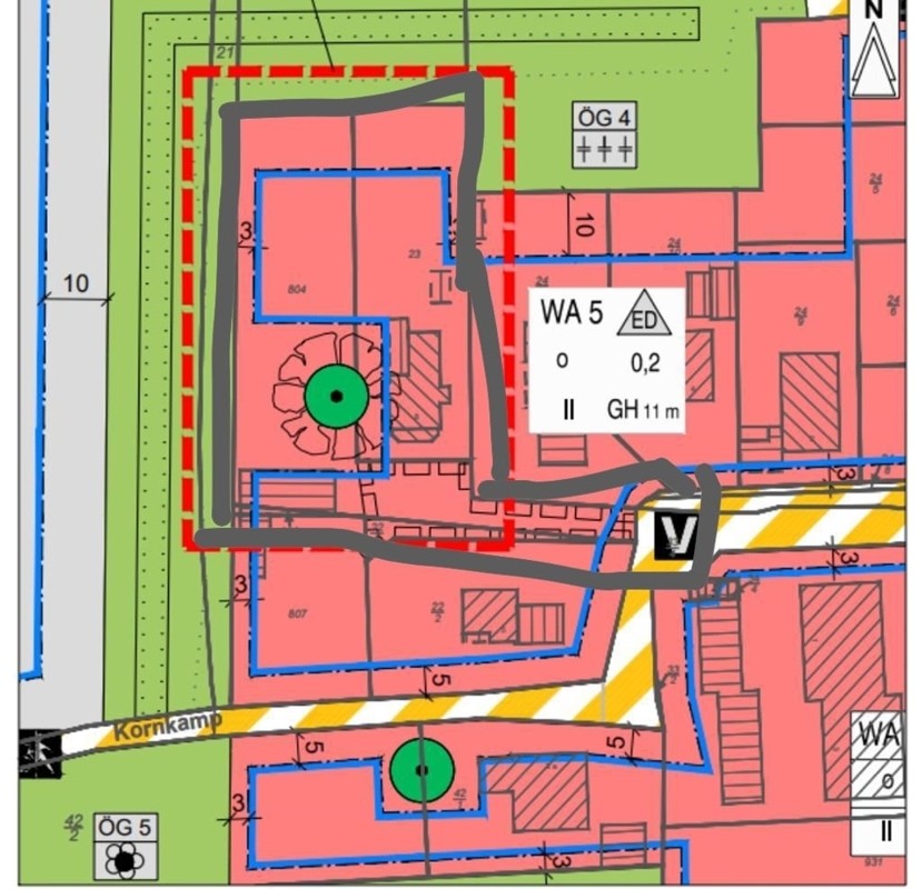 Sie haben auch die Möglichkeit, beide Flurstücke (954 und 952) zu erwerben, darauf können entweder 2 Einfamilienhäuser oder 4 Doppelhaushälften nach B-Plan gebaut werden, oder es besteht auch die Möglichkeit ein Mehrfamilienhaus darauf zu bauen. Die Grundstücksfläche von beiden Flurstücken beträgt ca. 1196m².