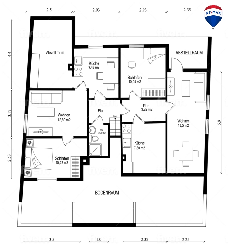 Es gibt 7 Wohneinheiten, welche wie folgt aufgeteilt sind: