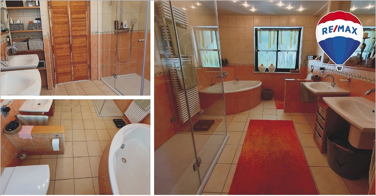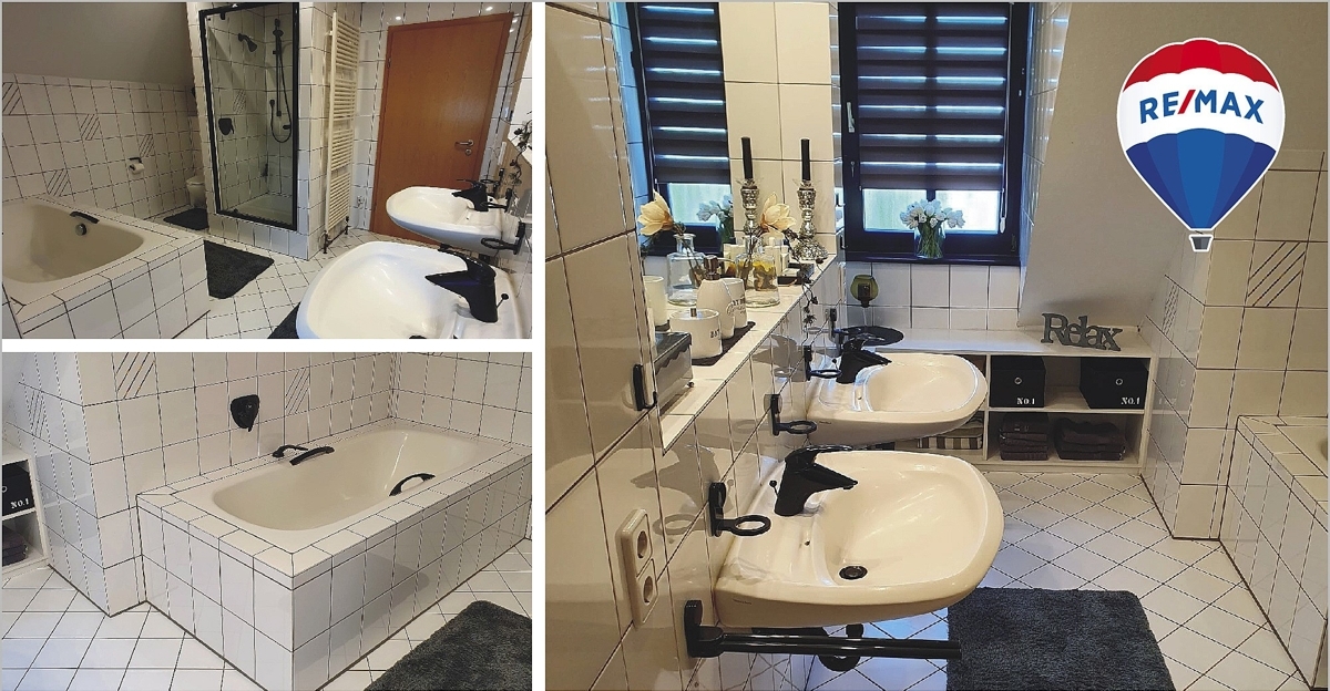 - Badezimmer mit Badewanne und separater Dusche (hell gefliest)
