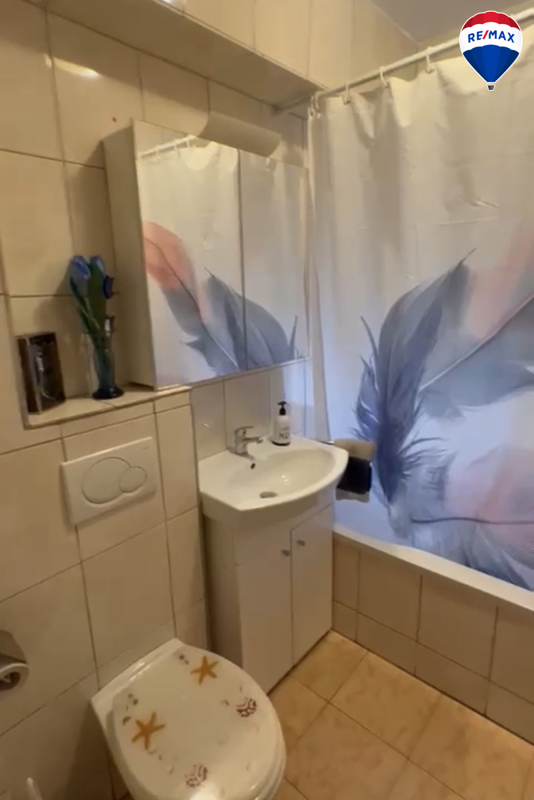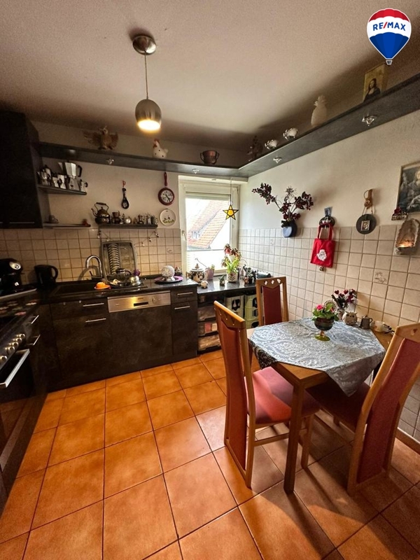 Sie liegt im ersten Obergeschoss und bietet auf ca. 67 m² drei geräumige Zimmer, eine gemütliche Küche mit Essbereich und ein Badezimmer mit Badewanne.