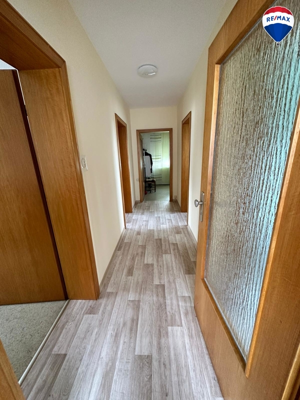 Besonders hervorzuheben ist der Balkon, welcher über das Wohnzimmer zu erreichen ist und mit seiner tollen Aussicht auf den grünen Garten zum Verweilen einlädt.