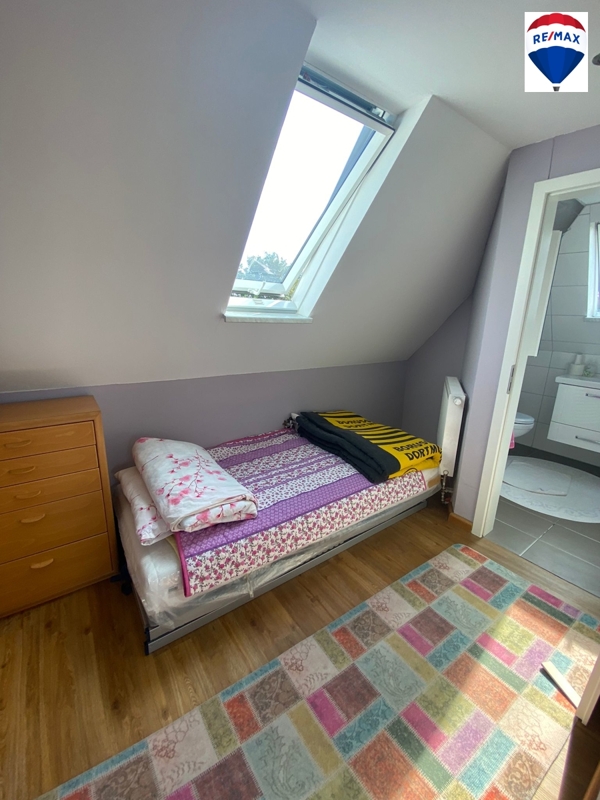 Zudem bietet Ihnen das ausgebaute Dachgeschoss ein weiteres Schlafzimmer, einen Flur mit Küchenanschluss und ein Badezimmer mit Dusche.