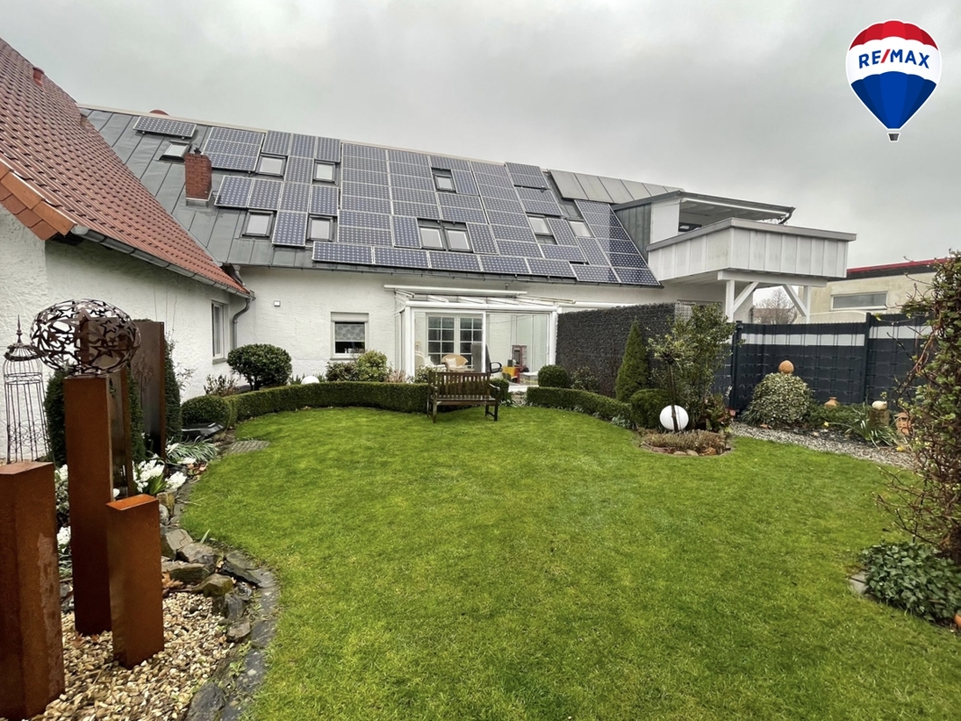 Eine Photovoltaik-Anlage sorgt für nachhaltige Energiegewinnung, während 12 m² Flachkollektoren für die Warmwasseraufbereitung durch Solarenergie sorgen und jährlich 5.500,00.-€ generieren.