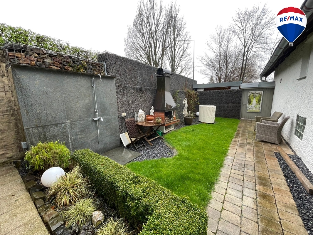 Ein Außenkamin lädt zu gemütlichen Abenden im Freien ein, und ein Holzspeicher sorgt stets für ausreichend Brennmaterial.