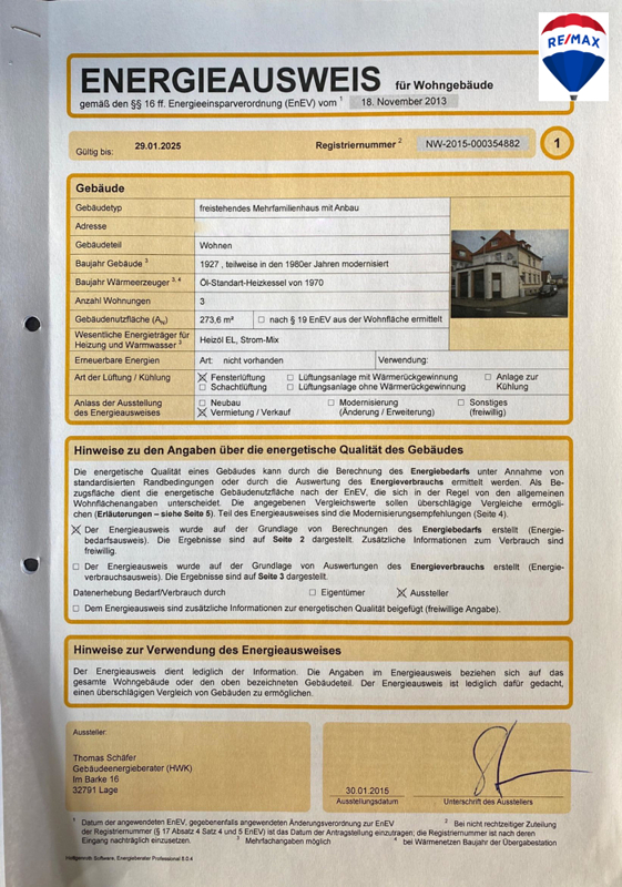 Wenn Sie innerhalb von 24 Stunden auf Ihre Anfrage keine Rückantwort erhalten haben, rufen Sie bitte unsere Hotline unter der Nummer: 0521/30 51 51 80 an oder schreiben Sie uns eine E-Mail an: bielefeld-mitte@remax.de .