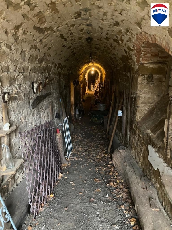 Den Gewölbekeller erreichen Sie über einen separaten Eingang von Außen, über einen langen Korridor.