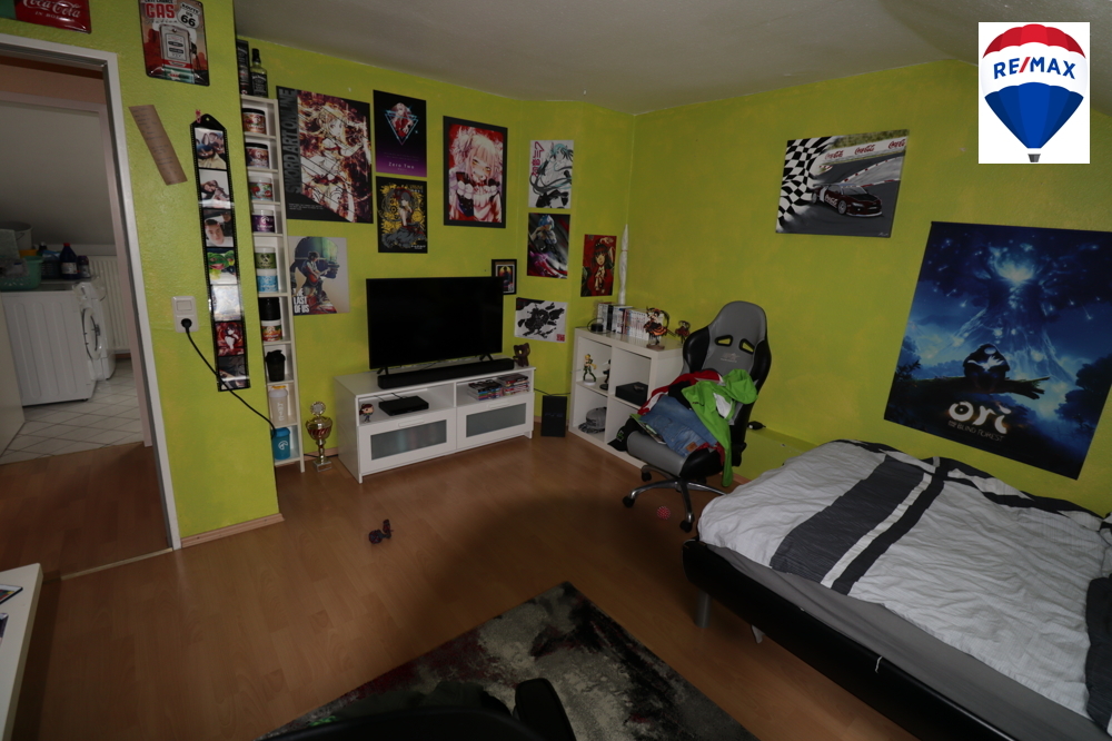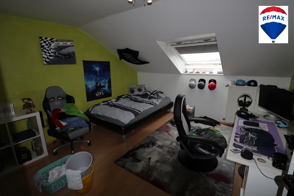 Über den Flur gelangen Sie rechts in die beiden Schlafzimmer, einen Raum der als Büro oder Kinderzimmer genutzt werden kann und in das lichtdurchflutete Badezimmer.