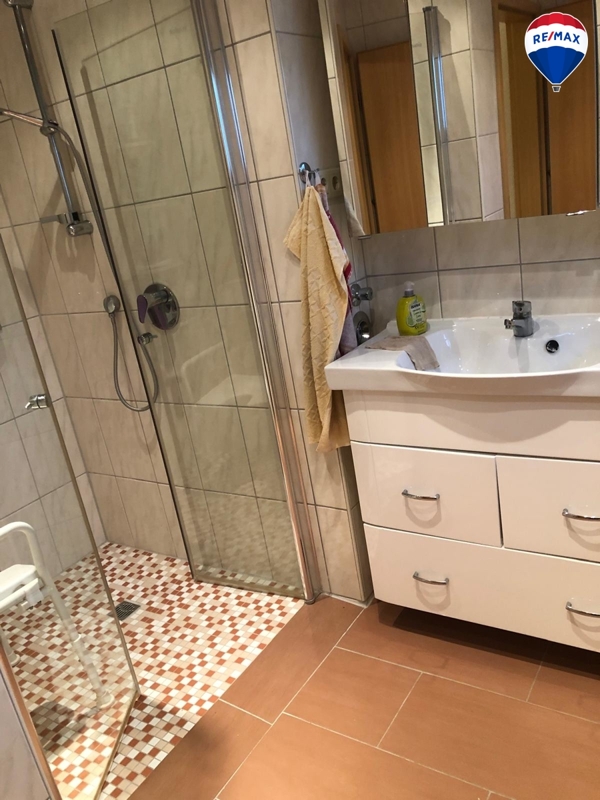 Das Badezimmer wurde vor ca. 9 Jahren vollständig saniert und besticht mit deckenhohen, schlichten Fliesen und einer praktischen begehbaren Dusche. Die hochwertige Verarbeitung sorgt für eine moderne und pflegeleichte Ausstattung, die keine Wünsche offenlässt.