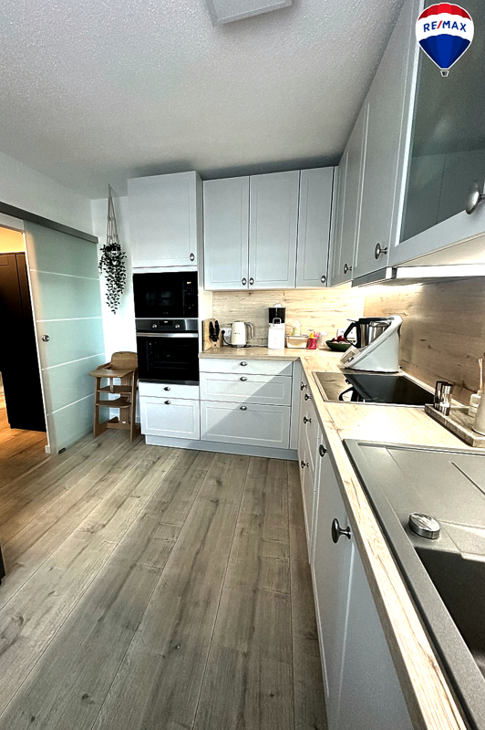 Der direkte Zugang zum Balkon ergänzt den Wohnraum und ermöglicht entspannte Stunden im Freien, ideal für die sonnigen Tage des Jahres. Zwei wunderbar geschnittene Schlafzimmer stehen zur Verfügung, ideal für kleine Familien oder als Gästezimmer und Arbeitsräume. Die modernisierte Küche ist mit aktuellen Geräten ausgestattet und bietet ausreichend Raum für Ihre kulinarischen Künste. Das Badezimmer wurde ebenfalls 2023 umfassend renoviert und überzeugt durch eine helle, ansprechende Gestaltung mit stilvollen Sanitärobjekten.
