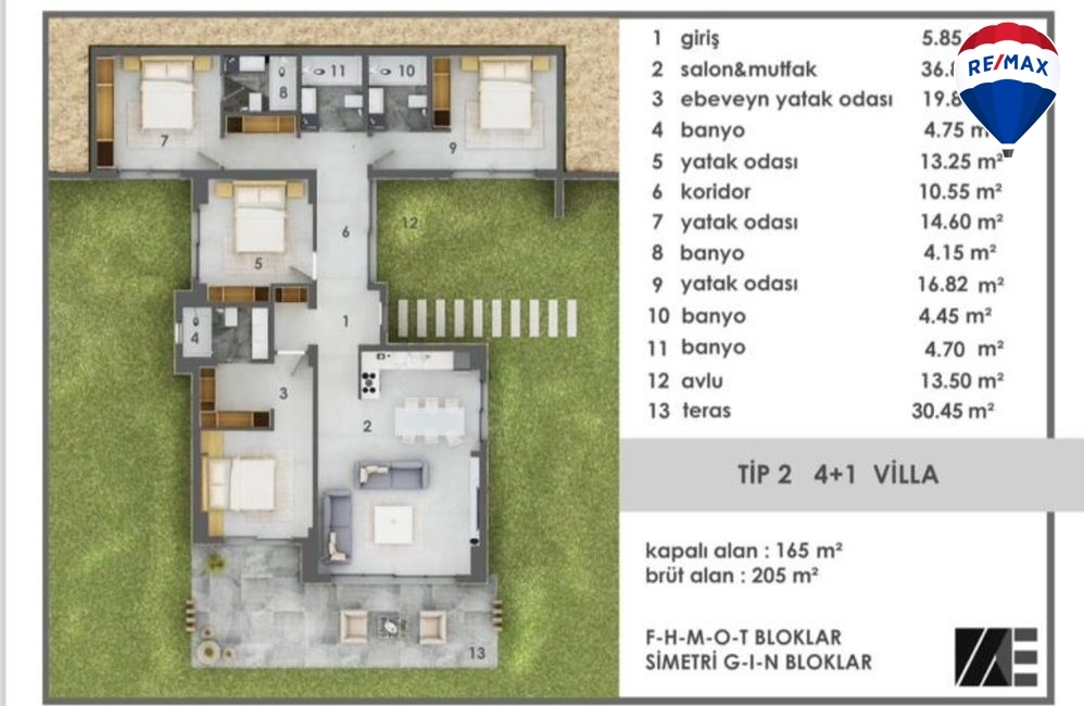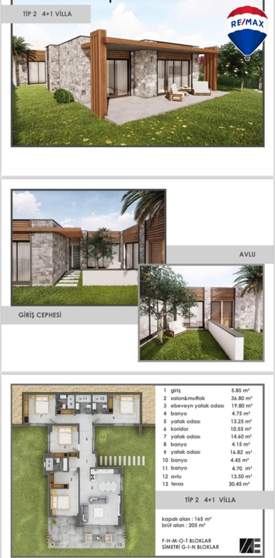 Villa tek katlı, ön giriş ve havuz tarafında teras alanı mevcut olup; müstakil konumludur.