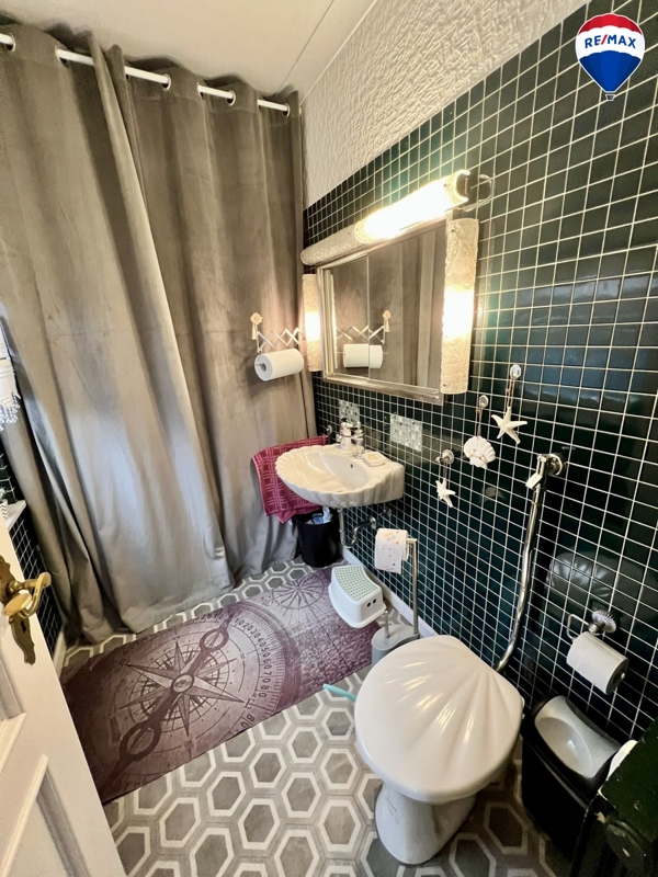 Die Treppe führt ins OG, wo sich ein weiteres Badezimmer mit Dusche, eine Küche mit Einbauküche und Abstellraum, ein Schlafzimmer, ein Wohnzimmer sowie 2 zusätzliche Zimmer befinden.