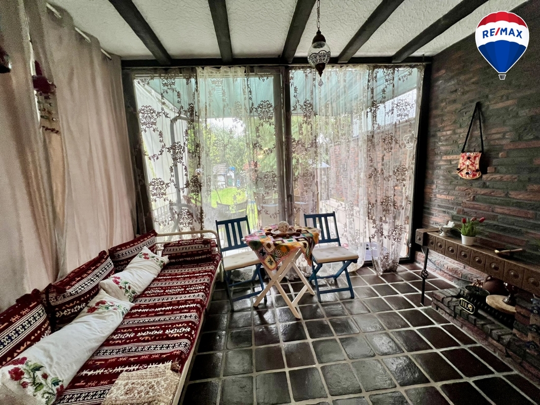 Im EG erwartet Sie ein einladender Eingangsbereich. Auf der rechten Seite befinden sich ein Schlafzimmer, ein Badezimmer mit Badewanne sowie ein lichtdurchflutetes Wohnzimmer, das nahtlos in das angrenzende Esszimmer übergeht und eine offene Raumaufteilung bietet. Auf der linken Seite des EGs finden Sie einen gemütlichen Wintergarten mit Kamin, der zu 2 überdachten Terrassen und dem Garten führt – der perfekte Ort zum Entspannen und Genießen.