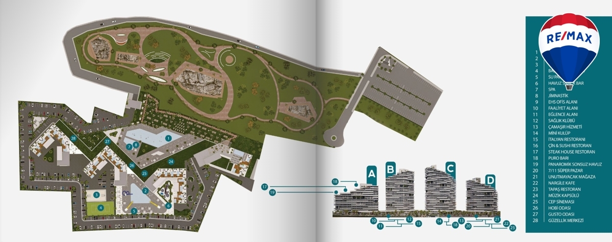 Ein Block wird als Hotel betrieben, während die weiteren drei exklusive Apartments und Freizeitangebote beherbergen. Beginnend mit neun Etagen, staffeln sich die Gebäude bis zu beeindruckenden 28 Stockwerken in den mittleren Blöcken – ein moderner, terrassenförmiger Aufbau mit Weitblick.