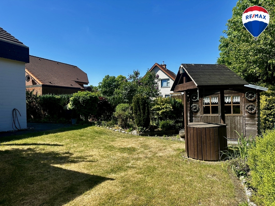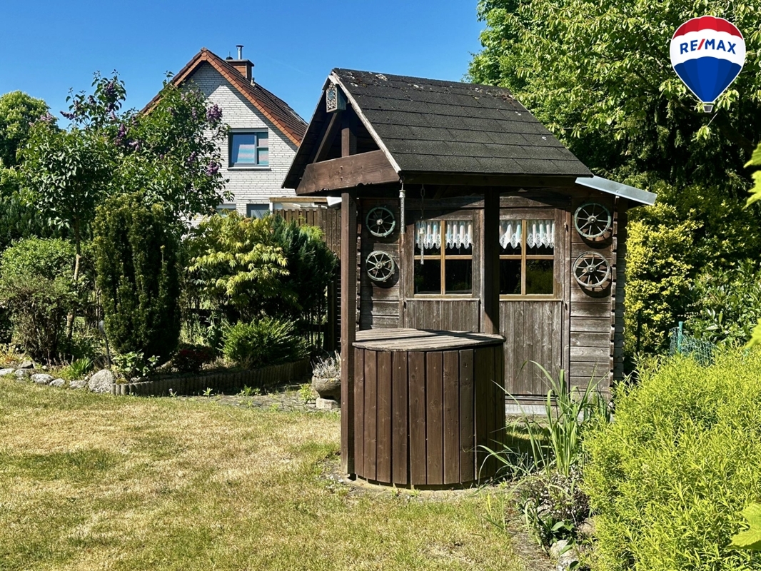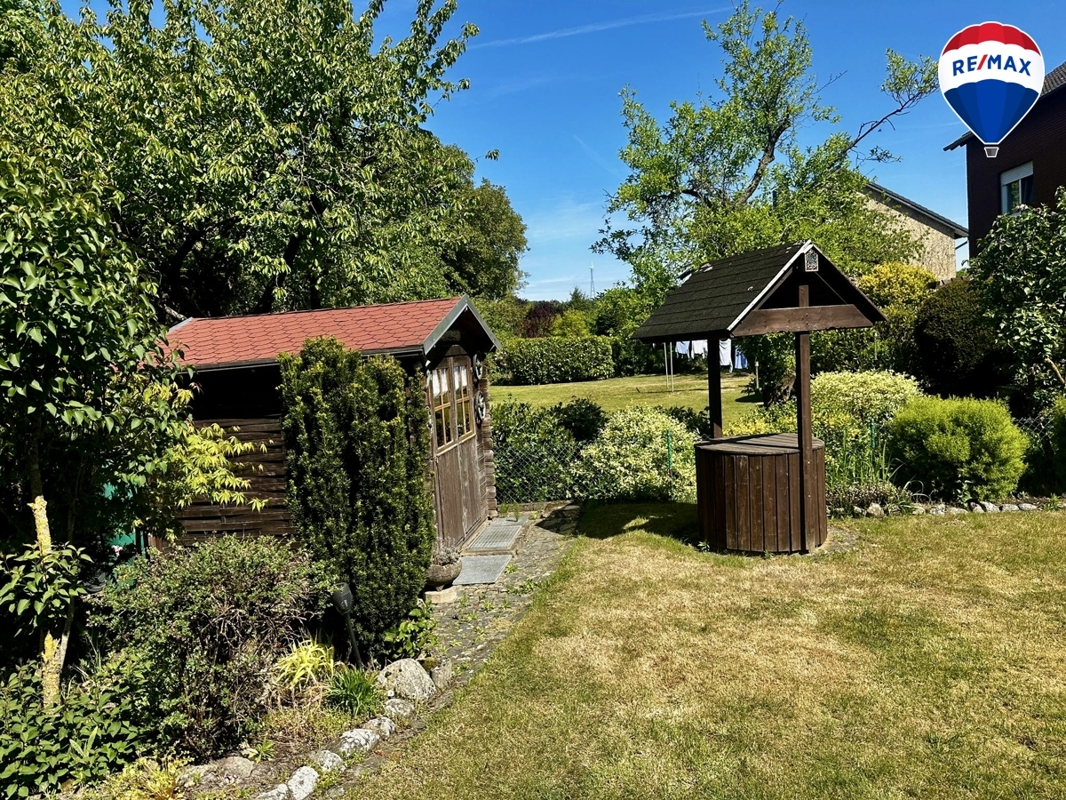 Der liebevoll gepflegte Garten lädt zum Entspannen und Verweilen ein. Sowohl vor als auch hinter dem Haus befinden sich kleine Gartenflächen. Der hintere Garten ist mit einem Gartenhaus, einem Grundwasserbrunnen und einer überdachten Terrasse ausgestattet – perfekt für Grillabende, Gartenpartys oder einfach zum Relaxen.