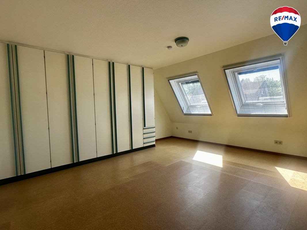 Im Obergeschoss erwarten Sie 3 gemütliche Schlafzimmer mit charmanten Dachschrägen. Eines der Schlafzimmer wurde mit modernen, elektrischen Verdunkelungsfenstern ausgestattet, was für erholsamen Schlaf sorgt. Das Tageslichtbad ist funktional gestaltet und verfügt über eine Badewanne, eine separate Dusche, zwei Waschtische, eine Toilette sowie ein Fenster. Ein kleiner Bodenraum bietet zusätzlichen Stauraum für Ihre Utensilien. Über eine Treppe im Flur gelangen Sie in den gedämmten, nicht ausgebauten Dachboden – ideal für zusätzlichen Stauraum oder kreative Nutzung.
