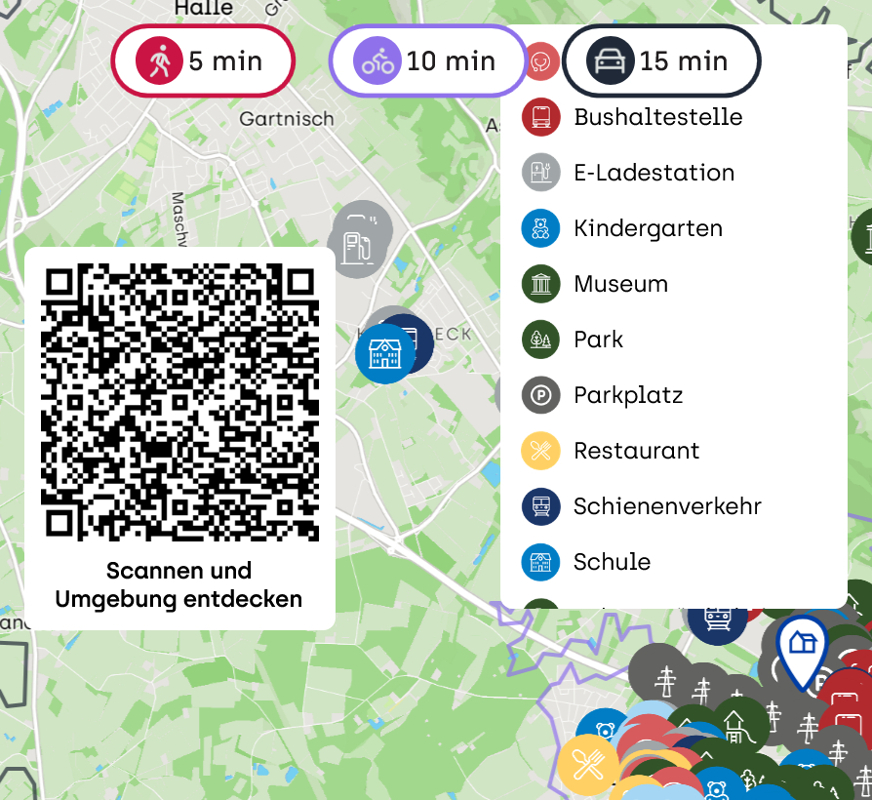 Einkaufsmöglichkeiten, Kindergärten, Schulen sowie ärztliche Versorgung befinden sich in der Nähe und sind schnell erreichbar. Die Anbindung an den öffentlichen Nahverkehr sowie an das Straßennetz ist ausgezeichnet – die nahegelegene B68 und die Autobahn A33 ermöglichen eine zügige Verbindung nach Bielefeld, Halle/Westf. und Gütersloh.