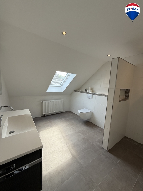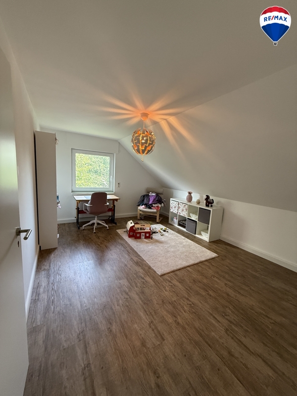 Im Obergeschoss stehen Ihnen zwei weitere Schlafzimmer sowie ein zusätzlicher, lichtdurchfluteter Wohnbereich zur Verfügung. Besonders hervorzuheben ist das barrierefreie Badezimmer auf dieser Etage, das nicht nur durch seine Großzügigkeit, sondern auch durch seine hochwertige Ausstattung überzeugt. Diese Etage eignet sich hervorragend für Gäste, Jugendliche oder auch als separater Rückzugsort innerhalb des Hauses.
