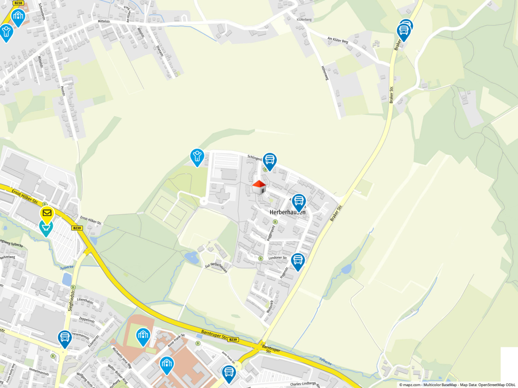 Die Anbindung an den öffentlichen Nahverkehr ist sehr gut – Bushaltestellen befinden sich in unmittelbarer Nähe. Auch die Bundesstraße B239 ist schnell erreichbar, was eine zügige Verbindung in die umliegenden Städte und zur Autobahn A2 ermöglicht.