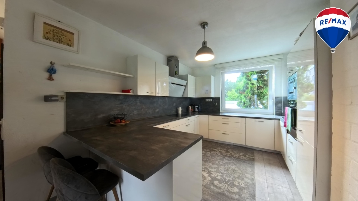 Die angrenzende Küche ist nicht nur funktional, sondern auch stilvoll eingerichtet. Sie bietet viel Arbeitsfläche und Stauraum und ist mit einer modernen Einbauküche ausgestattet, die im Kaufpreis enthalten ist.