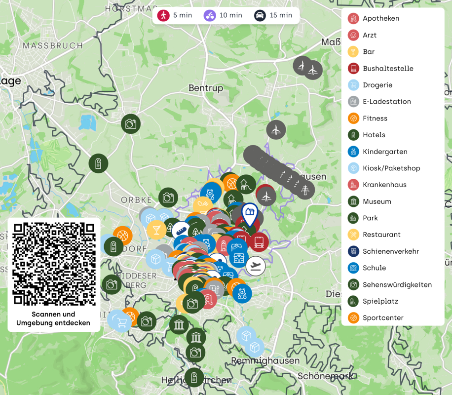 Diese Immobilie in Detmold besticht durch ihre hervorragende Anbindung an den öffentlichen Nahverkehr, mit einer Bushaltestelle in unmittelbarer Nähe. Der Bahnhof Detmold ist ebenfalls schnell erreichbar und bietet eine bequeme Anreise mit der Bahn. Der nahegelegene Flugplatz Detmold macht die Lage zudem für Vielflieger attraktiv.