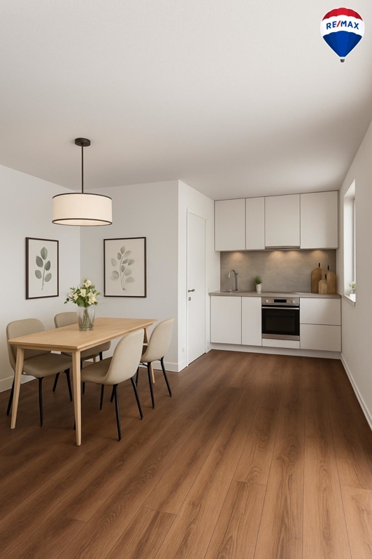 Das Herzstück der Wohnung bildet der offene Wohn- und Essbereich. Von hier aus gelangen Sie auf den ca. 18 m² großen Balkon, der ausreichend Platz zum Entspannen und Genießen im Freien bietet. Ein praktischer Abstellraum direkt neben der Küche sorgt für zusätzlichen Stauraum.