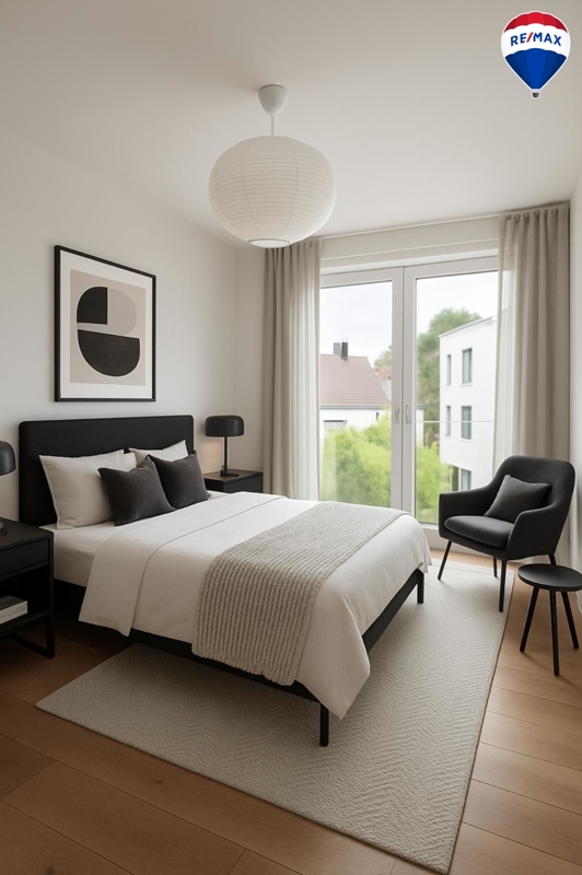 - Schlafzimmer mit ausreichend Platz für Schrank und Bett