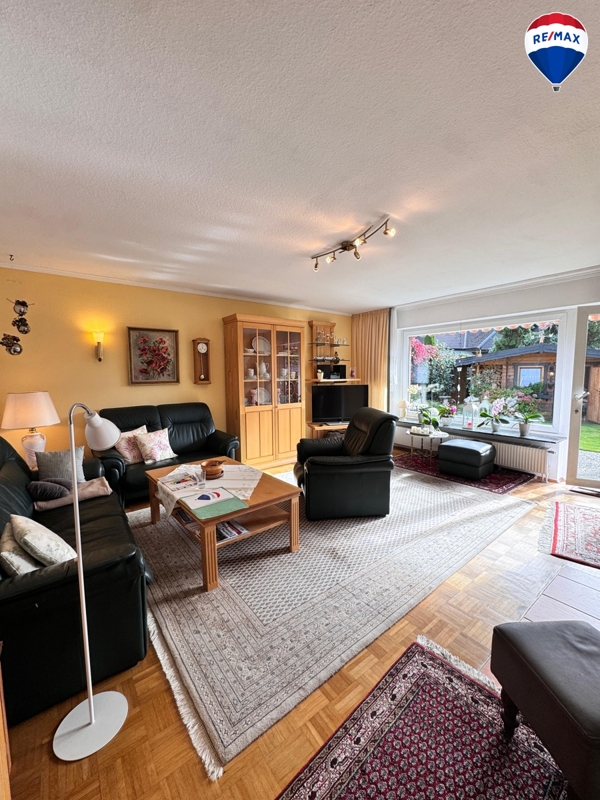 Dieser gepflegte Flachdach-Bungalow aus dem Jahr 1977 befindet sich in ruhiger Wohnlage von Hiddenhausen im Kreis Herford und überzeugt durch seine solide Massivbauweise „Stein auf Stein“ sowie eine durchdachte Raumaufteilung. Auf einem ca. 556 m² großen Grundstück stehen Ihnen ca. 110 m² Wohnfläche im Erdgeschoss sowie ein vollständig unterkellerter Bereich mit weiteren ca. 108 m² zur Verfügung.Das Erdgeschoss umfasst insgesamt 5 Zimmer, darunter ein großzügiges Wohnzimmer mit angrenzendem Esszimmer, ein Schlafzimmer sowie zwei Kinderzimmer. Ergänzt wird das Raumangebot durch eine separate Küche, die mit einer hochwertigen Miele-Einbauküche ausgestattet ist, ein Tageslichtbad und ein Gäste-WC. Edle Parkett- und Fliesenböden, Stuckelemente im Wohn- und Essbereich sowie ein stilvoller Handlauf aus Schmiedeeisen unterstreichen die hochwertige Ausstattung.