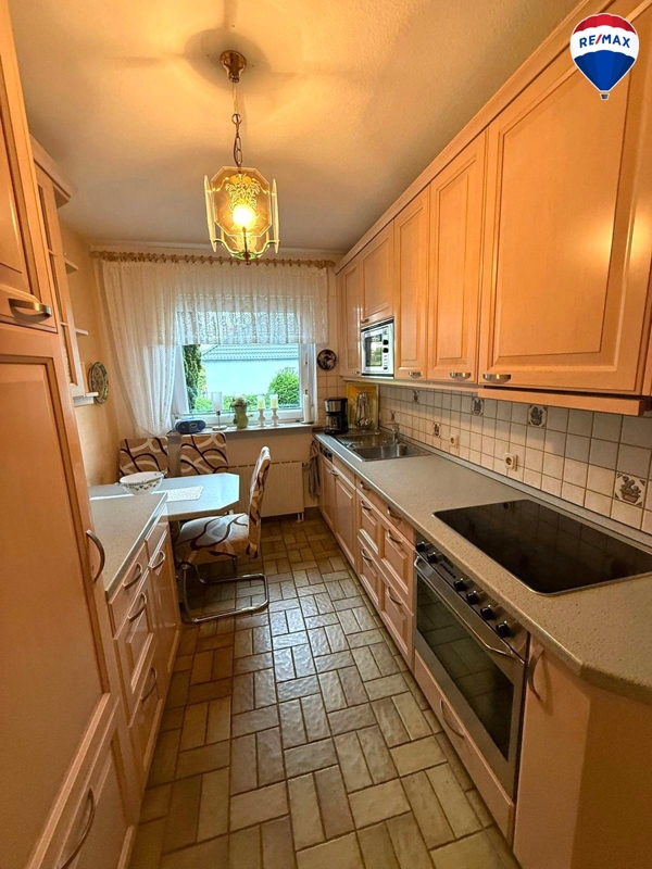 Technisch ist das Haus gut ausgestattet: Die Ölzentralheizung mit einem 4.500-Liter-Tank stammt aus dem Jahr 2001 und verbraucht lediglich ca. 750 Liter im Jahr. Zusätzlich sorgt ein Kaminofen im Wohnzimmer für behagliche Wärme. Die modernen, 3-fach verglasten Schüco-Fenster, teils mit Fliegengittern, gewährleisten eine hervorragende Dämmung. Für Sicherheit ist ebenfalls gesorgt: Alle Fenster – bis auf eines – verfügen über stabile, feuerverzinkte Metallgitter, das Grundstück ist rundum gesichert. Elektrische Rollläden am Terrassenfenster sowie eine neue Haustür und erneuerte Innentüren im Erdgeschoss runden die Ausstattung ab.