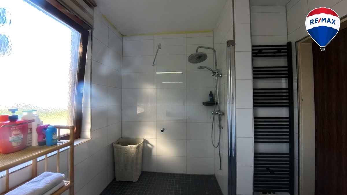 Das Badezimmer wurde modernisiert und verfügt über eine ebenerdige Dusche, ein wandhängendes WC und ein ansprechendes, zeitgemäßes Fliesendesign. Zusätzlich steht ein separates Gäste-WC zur Verfügung.