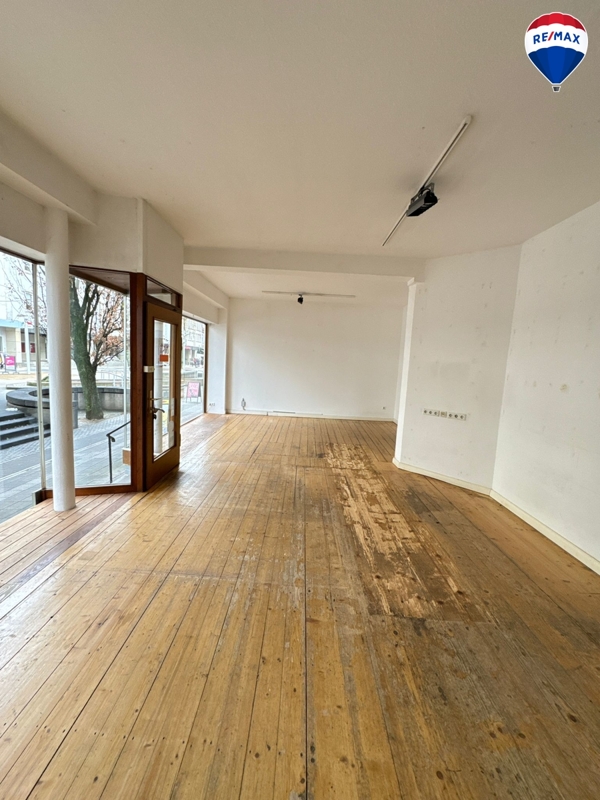 Der einladende große Frontbereich verfügt über große Fenster, die viel Tageslicht hereinlassen und optimale Werbemöglichkeiten bieten. Hier haben Sie die Freiheit, Ihre Produkte oder Dienstleistungen optimal zu präsentieren.