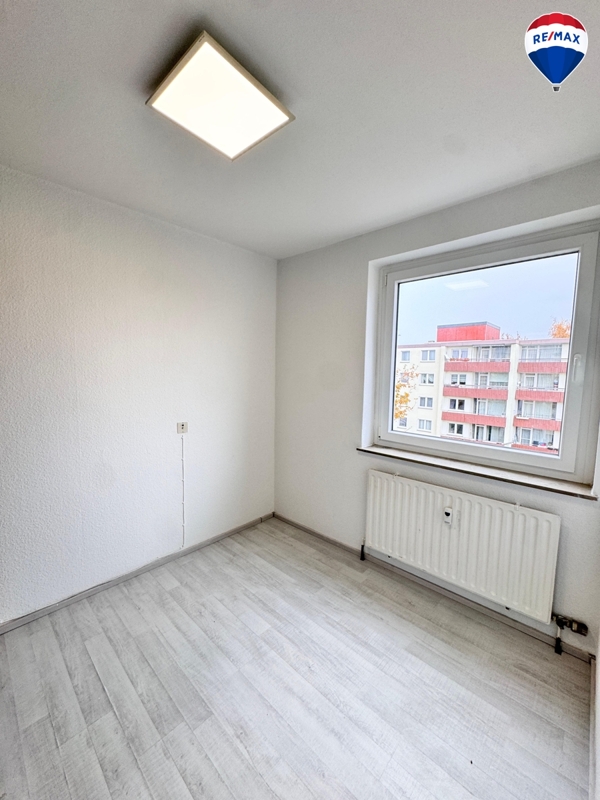 Das Schlafzimmer überzeugt durch seine angenehme Größe und bietet ausreichend Raum für ein Bett, sowie Stauraum.