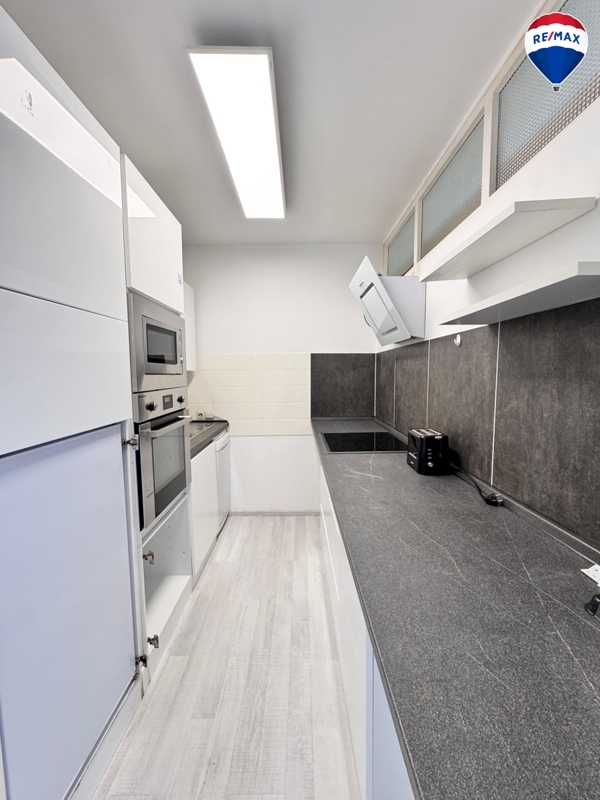 Die funktional gestaltete Einbauküche ist mit allen notwendigen Geräten für den täglichen Bedarf ausgestattet.