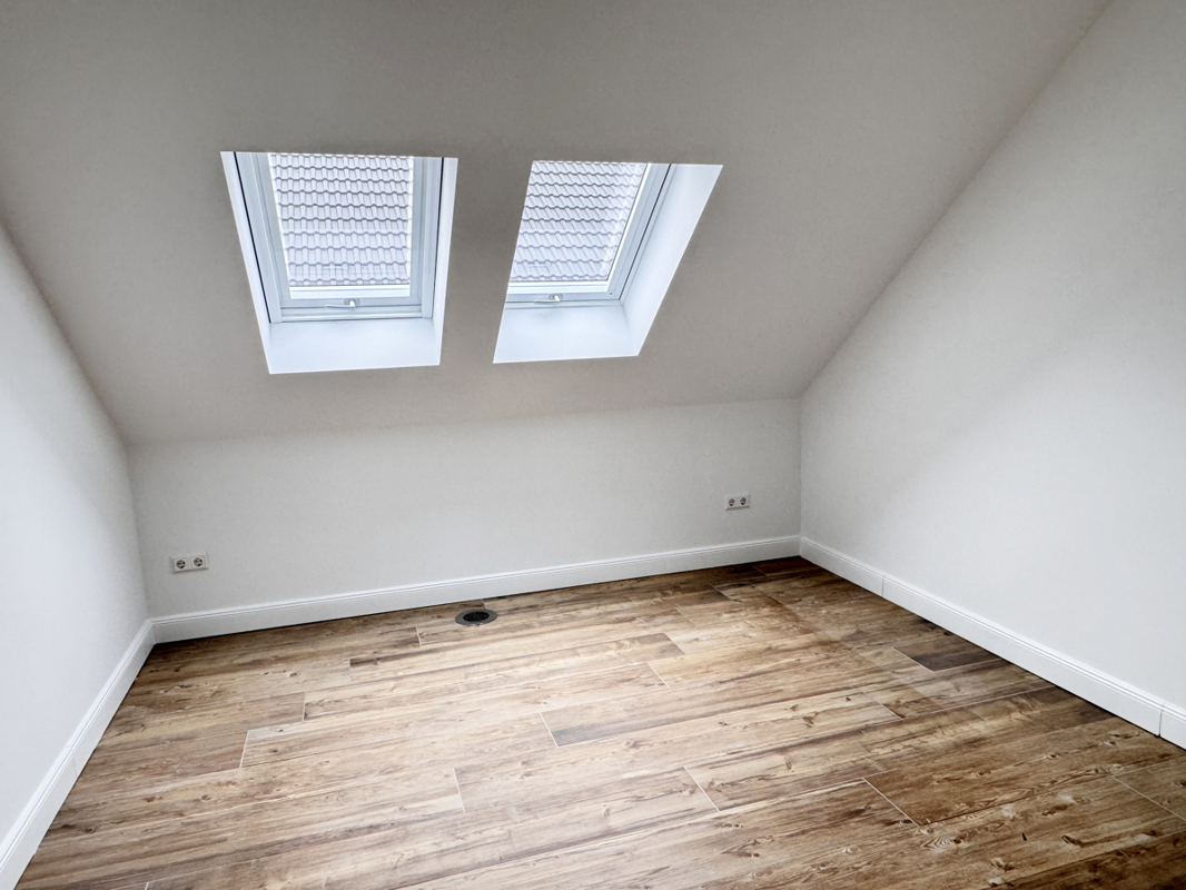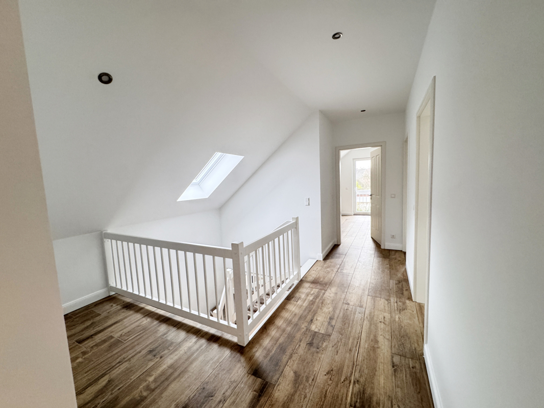 Von hier aus erreichen Sie drei großzügige Schlafzimmer, die viel Platz für individuelle Gestaltungsmöglichkeiten bieten. Ein weiteres, kleineres Zimmer mit Dachfenstern eignet sich hervorragend als Büro oder Ankleidezimmer.
