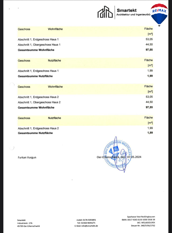 • Genehmigte Wohnfläche: ca. 278 m² (EG & OG)