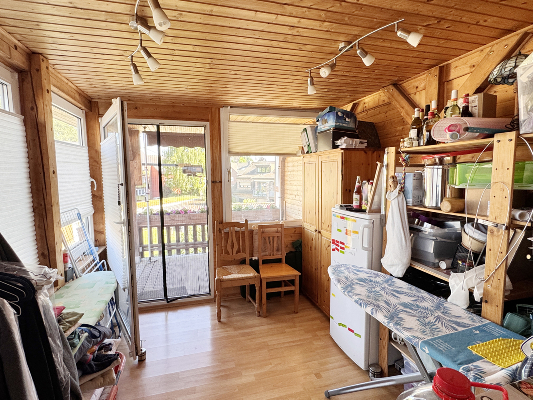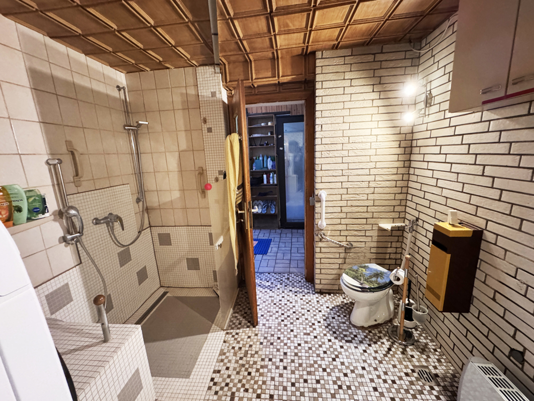 Dieses gepflegte und vielseitig nutzbare Mehrgenerationenhaus / Zweifamilienhaus mit ca. 228 m² Wohnfläche und einem ca. 754 m² großen Grundstück bietet zahlreiche Nutzungsmöglichkeiten – ideal für Familien, Wohnen und Arbeiten unter einem Dach oder als Kapitalanlage mit zwei Wohneinheiten.Im Erdgeschoss befindet sich eine sanierungsbedürftige Wohnung mit ca. 98 m² Wohnfläche, eine Werkstatt (ca. 23 m²) sowie ein überdachter Hof (ca. 38 m²), der direkt zur großen Terrasse mit gemauertem Holzbackofen führt. Eine zusätzliche Küche und ein separates Gäste-WC sind ebenfalls vorhanden. Im Garten erwartet Sie ein eingelassener Pool, ein Gewächshaus sowie ein großer Gartenschuppen. Zudem bietet die Wohnung eine eigene Sauna mit Ruhebereich.