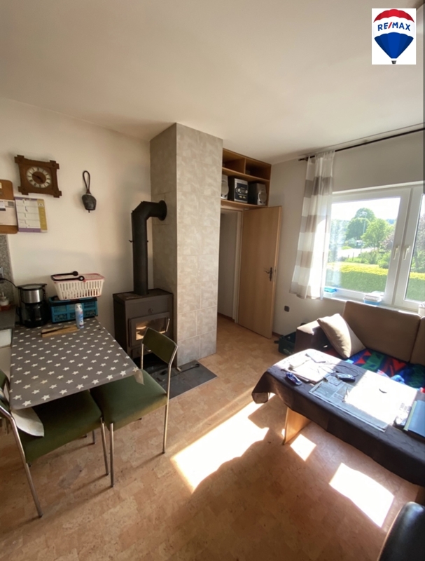 Auf der linken Seite im Erdgeschoss befindet sich eine ca. 30 m² große zwei Zimmer Wohnung mit einem geräumigen Wohn- und Essbereich, einem Schlafzimmer und einem Badezimmer mit Dusche.
