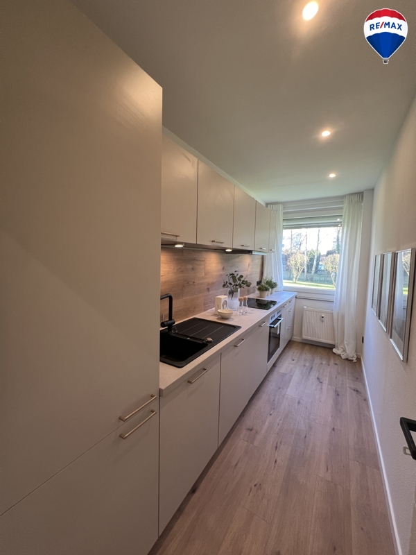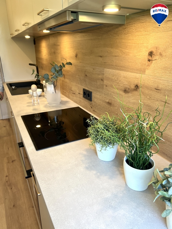 Ein echtes Highlight ist die nagelneue, stilvolle Einbauküche, die mit modernem Design und hochwertiger Ausstattung überzeugt. Sie bietet nicht nur reichlich Stauraum, sondern auch einen wunderschönen Blick ins Grüne.