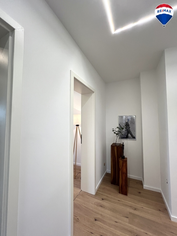 Schon beim Betreten werden Sie von einem stilvollen Flur mit integrierter Lichtleiste empfangen, die für eine elegante und angenehme Atmosphäre sorgt.